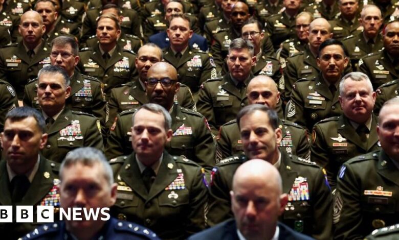 Defence Secretary Pete Hegseth also spoke, declaring an end to “woke” culture at the Pentagon and announcing new “male-level”, physical fitness standards for military officials.