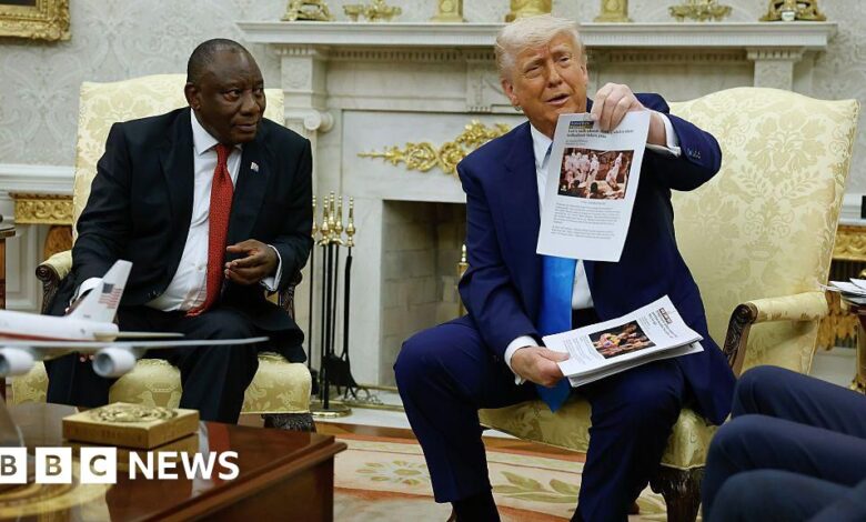 In the Oval Office in May, Trump confronted South Africa’s President Cyril Ramaphosa and claimed white farmers in his nation were being killed and “persecuted”.