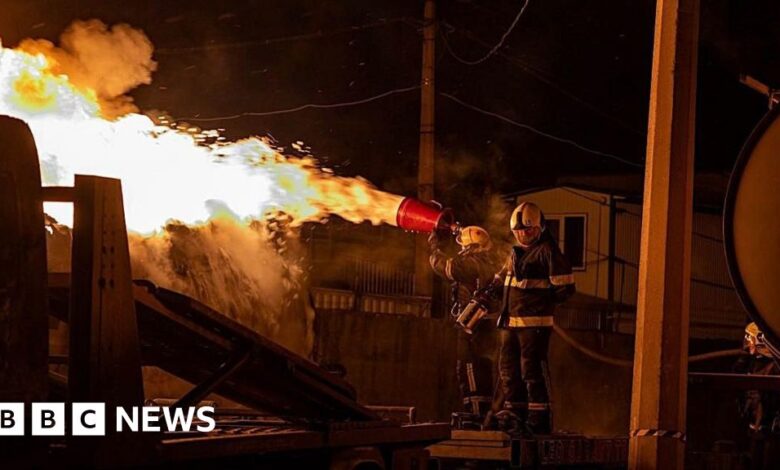 Watch: Firefighters battle blazes in Kyiv and Kharkiv after Russian strikes