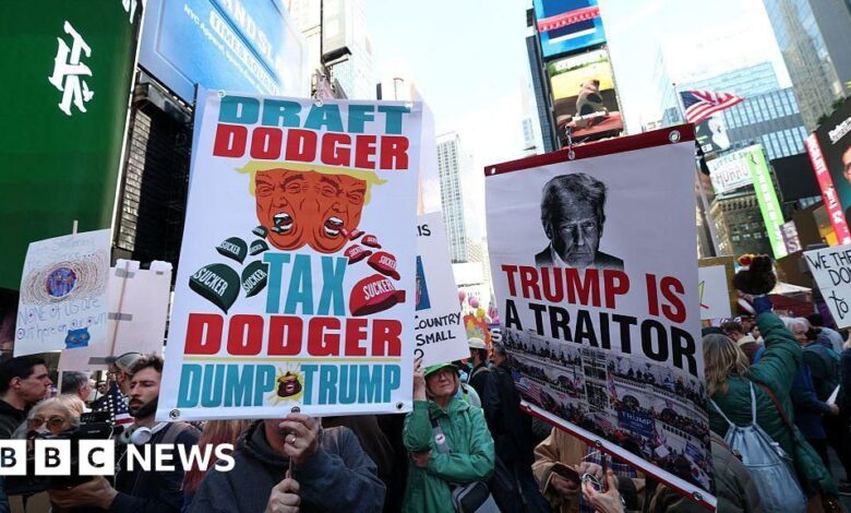 Thousands have already packed Times Square for the event organised by No Kings, a coalition of left-leaning groups.